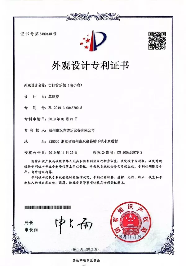 Το κρουστό όργανο σε σχήμα καμηλοπάρδαλης είναι προϊόν της σειράς Kacalol του Hank, που αποτελεί την κύρια προώθηση του Hank. Η σειρά έχει πολλά χαριτωμένα σχέδια κινουμένων σχεδίων, και οι καμηλοπαρδάλεις είναι ένα από αυτά. Κάθε προϊόν της σειράς έχει κατοχυρωθεί με δίπλωμα ευρεσιτεχνίας στην Κίνα. Το πάνελ της καμηλοπάρδαλης είναι κατασκευασμένο από έντεκα σωλήνες αλουμινίου, οι οποίοι είναι μικροί και χαριτωμένοι σε σχήμα, καθιστώντας το πολύ κατάλληλο για μικρά παιδιά.