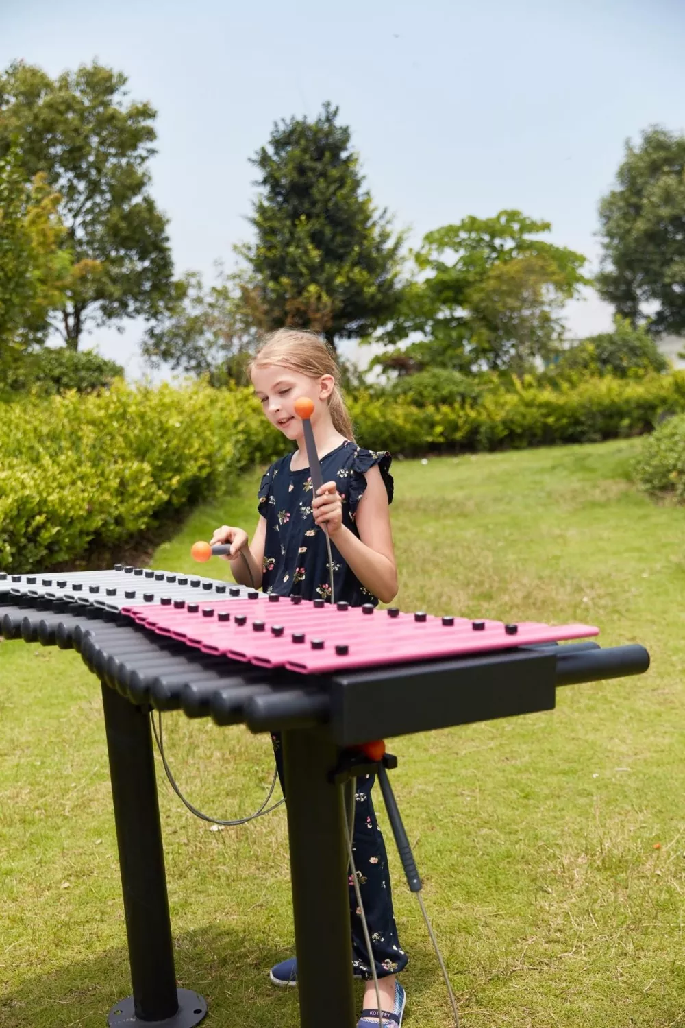Με την καθρέφτη διάταξή του και την εύκολη πρόσβαση στο σχεδιασμό, το duo cupla υπαίθριο ξυλόφωνο επιτρέπει στους παίκτες να αλληλεπιδρούν και από τις δύο πλευρές, καθιστώντας το ιδανικό για ντουέτα, ομαδικές συναντήσεις ή σόλο εξερεύνηση. Το σχήμα του μαλακού κύματος δεν είναι μόνο εντυπωσιακό, αλλά και εντυπωσιακό. Εξασφαλίζει ότι όλοι, συμπεριλαμβανομένων εκείνων που έχουν περιορισμένη κινητικότητα ή χρήστες αναπηρικών καροτσάκια, μπορούν άνετα να φτάσουν σε κάθε σημείωση. Το duo duo cupla υπαίθριο ξυλόφωνο δεν έχει χορδές ή καλώδια: Κάθε σημείωση είναι ασφαλώς σταθερή σε μια ανθεκτική πλάκα υποστήριξης HDPE. Ενισχυμένος συντονισμός: Ο μαύρος ανοδιωμένος συντονιστής αλουμινίου ενισχύει φυσικά τον ήχο.