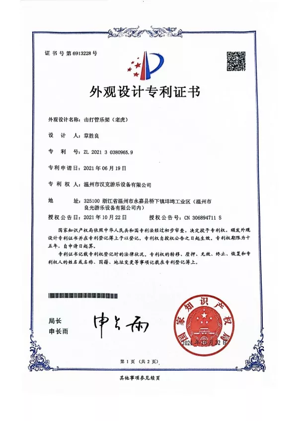 Το Glasses Tiger Shaped Percussion Instrument έχει ύψος 105 * 32 * 175 και είναι κατασκευασμένο από κράμα αλουμινίου + ίνες γυαλιού ενισχυμένο πλαστικό + γαλβανισμένο σωλήνα. Στην αριστερή του πλευρά, υπάρχει κάτι παρόμοιο με μια κουπαστή που μπορεί να στερεωθεί στον τοίχο ή να χρησιμοποιηθεί για να βοηθήσει τα κουρασμένα παιδιά να ξεκουραστούν.